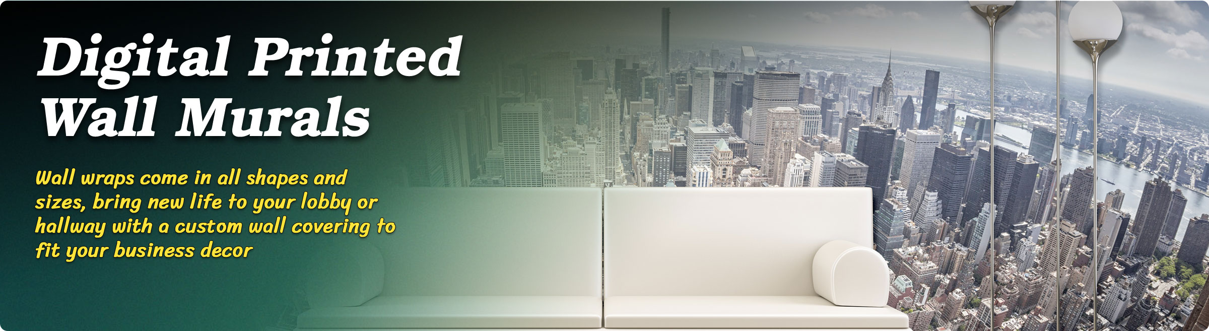Wall murals offer a range of aesthetic options including extraordinary, colorful, and unique designs. We can produce your existing design, if you have one, or we can custom design just what you want. Vibrant and odorless prints produced with HP Latex Inks are the ideal choice for any location where interior air quality is a concern.